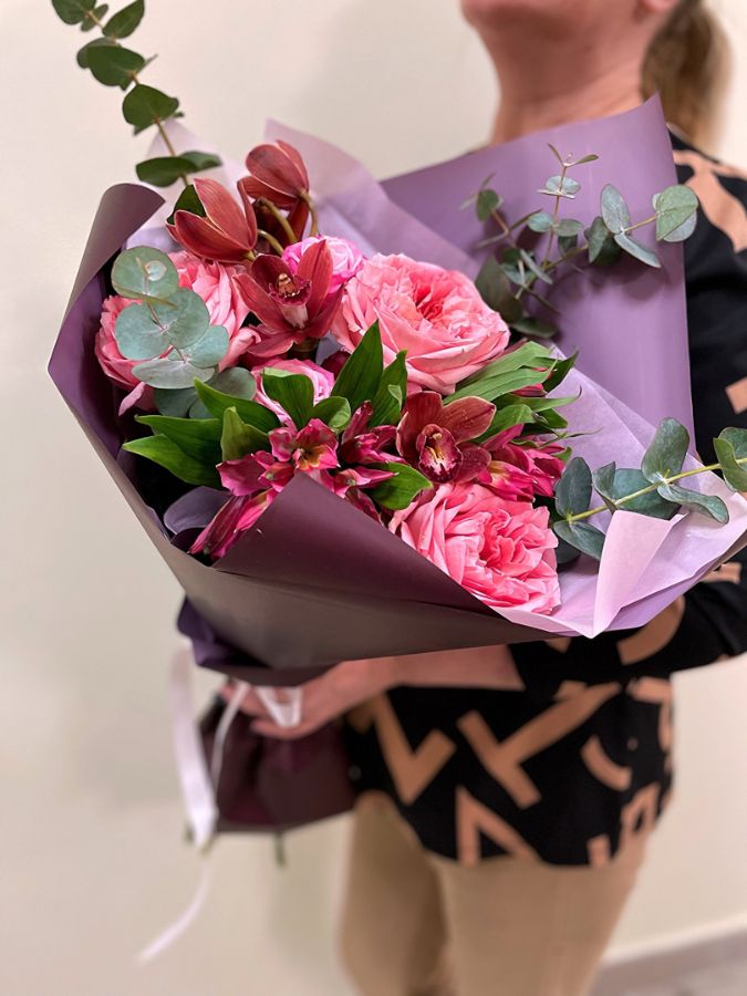 Модные и стильные букеты, нежные композиции в коробке, от классических до креативных, авторских, съедобных с конфетами, орехами, клубникой, набором продуктов. Низкие цены, большой выбор!